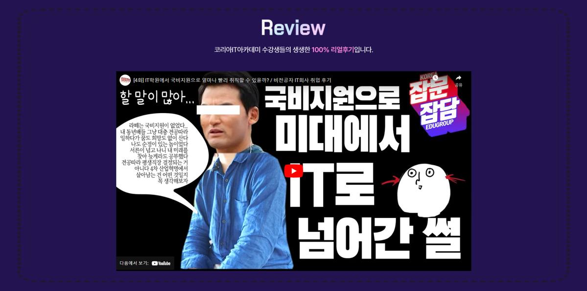 또한 전국 주요 도시에 지점을 운영하며, 평균 취업률 89.9%라는 성과를 기록하고 있다는 점도 주목할 만합니다. 취업 전문 교육기관으로서 쌓아온 18년의 노하우가 있기 때문에 가능한 결과겠죠. 여기에 수강생 전원에게 ‘취업 성공 수당 지원’ 같은 특별 혜택까지 제공해 수강생의 부담을 줄여줍니다.