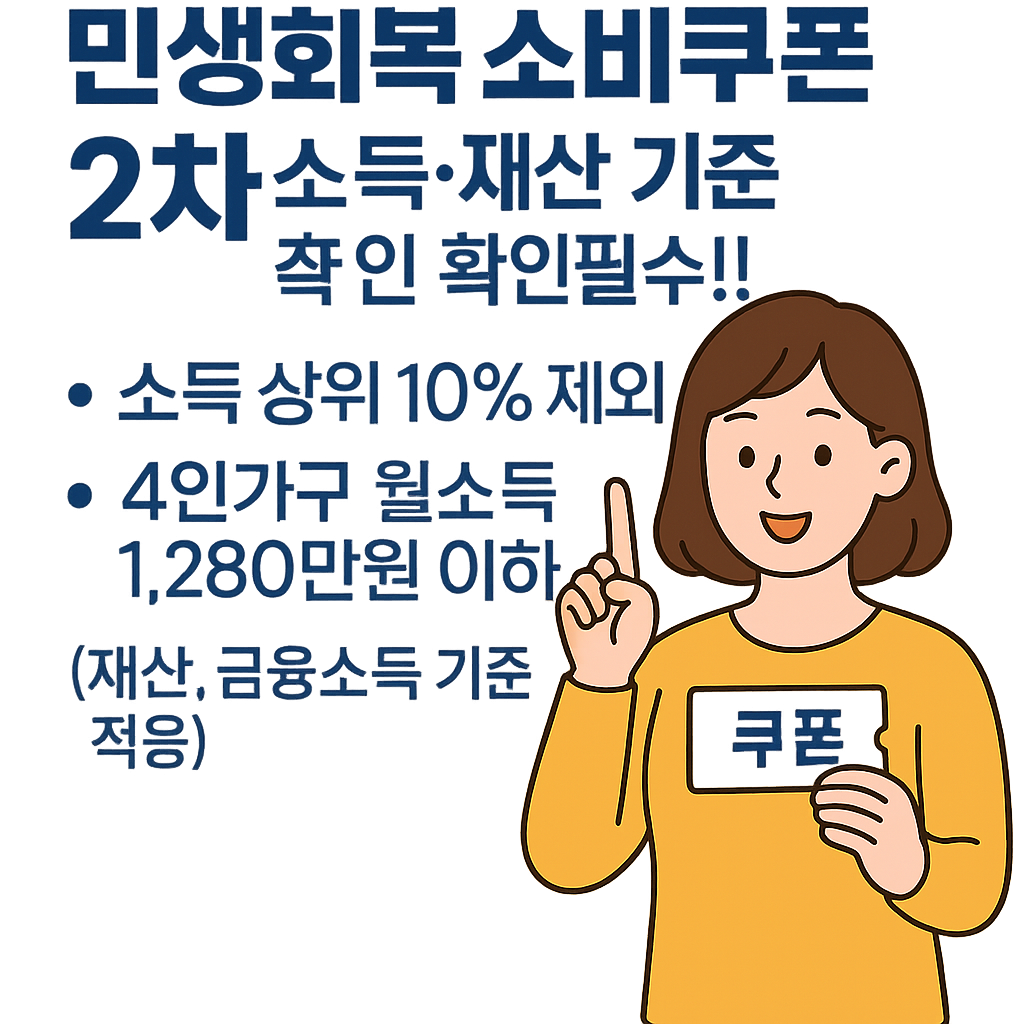 정부는 경기 침체와 물가 부담 완화를 위해 민생회복 소비쿠폰 2차 지급을 추진합니다. 국민 생활 안정과 내수 진작을 목적으로, 소득·재산 기준에 따라 선별 지원이 진행됩니다.